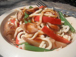 This is a very simple little stir fry meal from my Fast and Light cook book that serves 2 people and has a dry weight of only 185g, plus noodles. I have used thick egg (Hokkien) noodles, with some interesting background flavours and this makes a pleasant change from other standard pasta dishes. It is … Continue reading Mushroom and Pepper Stir Fry with Noodles